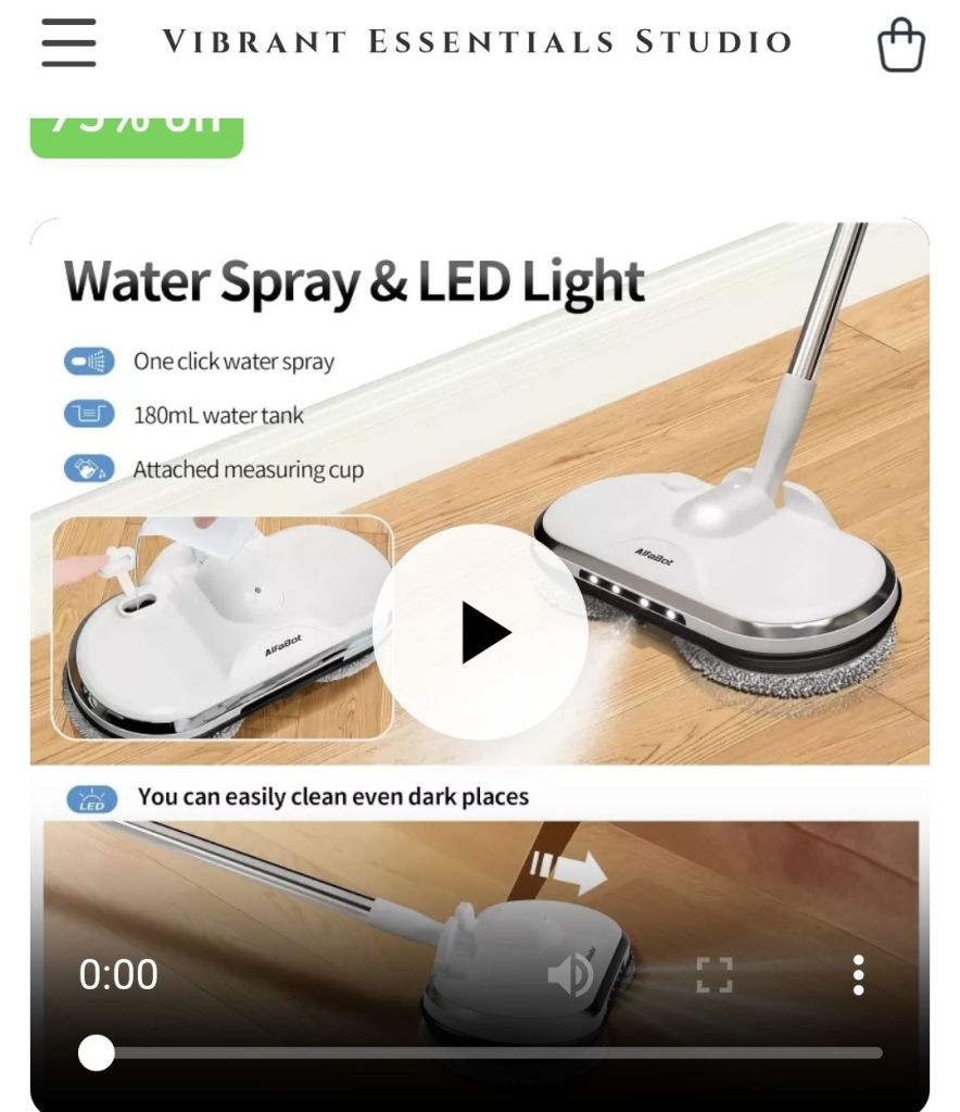 Here you go! Electric wireless mop https://vibrantessentialsstudio.shop/effortless-cordless-electric-spin-mop-with-water-sprayer-led-headlight/