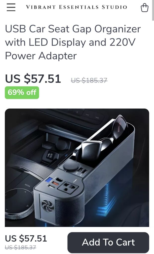 and chargeable organizer for your car! https://vibrantessentialsstudio.shop/usb-car-seat-gap-organizer-with-led-display-and-220v-power-adapter/